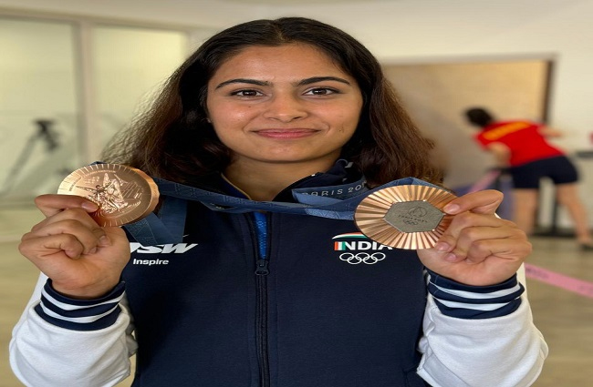 ਜ਼ਿਕਰਯੋਗ ਹੈ ਕਿ 22 ਸਾਲਾ ਮਨੂ ਭਾਕਰ ਨੇ ਪੈਰਿਸ ਉਲੰਪਿਕ ’ਚ ਦੋ ਕਾਂਸੀ ਦੇ ਤਗ਼ਮੇ ਜਿੱਤ ਕੇ ਦੇਸ਼ ਦਾ ਨਾਂ ਰੌਸ਼ਨ ਕੀਤਾ ਹੈ। ਮਨੂ ਨੇ ਪੈਰਿਸ ਉਲੰਪਿਕ ’ਚ ਔਰਤਾਂ ਦੇ 10 ਮੀਟਰ ਏਅਰ ਪਿਸਟਲ ਮੁਕਾਬਲੇ ’ਚ ਕਾਂਸੀ ਦਾ ਤਗ਼ਮਾ ਜਿੱਤ ਕੇ ਦੇਸ਼ ਦਾ ਖਾਤਾ ਖੋਲ੍ਹਿਆ। ਇਸ ਤੋਂ ਬਾਅਦ ਉਸ ਨੇ ਸਰਬਜੋਤ ਸਿੰਘ ਨਾਲ ਮਿਲ ਕੇ 10 ਮੀਟਰ ਏਅਰ ਪਿਸਟਲ ਮਿਕਸਡ ਟੀਮ ਈਵੈਂਟ ਵਿੱਚ ਕਾਂਸੀ ਦਾ ਤਗ਼ਮਾ ਜਿੱਤਿਆ।