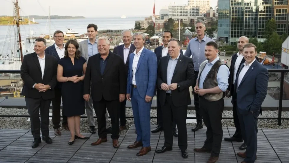 ਪ੍ਰਧਾਨ ਮੰਤਰੀ ਜਸਟਿਨ ਟਰੂਡੋ ਨੇ ਬੁੱਧਵਾਰ ਨੂੰ ਕੈਨੇਡਾ ਦੇ ਵੱਖ-ਵੱਖ ਸੂਬਿਆਂ ਦੇ ਮੁੱਖ ਮੰਤਰੀਆਂ (Premiers) ਨਾਲ ਸਰਹੱਦੀ ਸੁਰੱਖਿਆ ਨੂੰ ਮਜ਼ਬੂਤ ਕਰਨ ਦੀ ਫੈਡਰਲ ਸਰਕਾਰ ਦੀ ਯੋਜਨਾ ਬਾਰੇ ‘ਸੰਖੇਪ ਜਾਣਕਾਰੀ’ ਸਾਂਝੀ ਕੀਤੀ ਅਤੇ ਅਮਰੀਕਾ ਦੇ ਨਵੇਂ ਚੁਣੇ ਗਏ ਰਾਸ਼ਟਰਪਤੀ ਡੋਨਲਡ ਟਰੰਪ ਵੱਲੋਂ ਦਿੱਤੀ ਗਈ ਧਮਕੀ ਮੁਤਾਬਕ ਟੈਰਿਫ਼ ‘ਤੇ ਸੰਭਾਵਿਤ ਪ੍ਰਤੀਕ੍ਰਿਆਵਾਂ ‘ਤੇ ਚਰਚਾ ਕੀਤੀ।