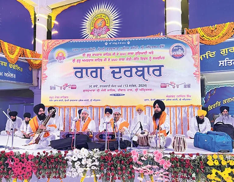 ਗੁਰੂ ਰਾਮਦਾਸ ਜੀ ਦੇ ਗੁਰਤਾਗੱਦੀ ਦਿਵਸ ਅਤੇ ਗੁਰੂ ਅਮਰਦਾਸ ਜੀ ਦੇ 450 ਸਾਲਾ ਜੋਤੀ ਦਿਵਸ ਸਬੰਧੀ ਸ਼੍ਰੋਮਣੀ ਕਮੇਟੀ ਵੱਲੋਂ ਗੁਰਦੁਆਰਾ ਸ੍ਰੀ ਮੰਜੀ ਸਾਹਿਬ ਦੀਵਾਨ ਹਾਲ ਵਿਖੇ ਅੱਜ ਸ਼ਾਮ ਨੂੰ ਰਾਗ ਦਰਬਾਰ ਲਾਇਆ ਗਿਆ ਜੋ ਦੇਰ ਰਾਤ ਤੱਕ ਜਾਰੀ ਰਿਹਾ।