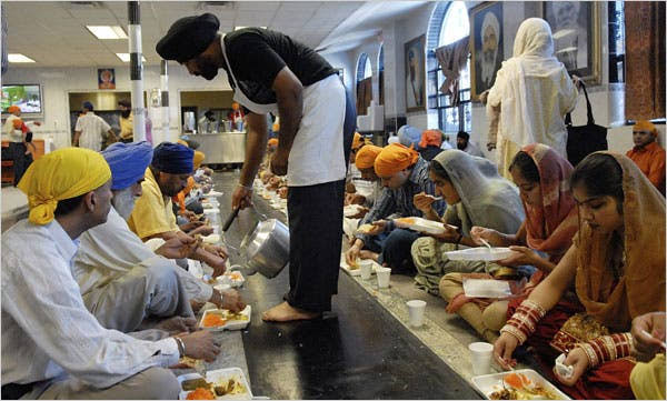 ਨਿਊਯਾਰਕ ਦੇ ਗੁਰਦੁਆਰਿਆਂ ਵਿੱਚ ਹਰ ਹਫ਼ਤੇ ਮੁਫ਼ਤ ਲੰਗਰ ਵਰਤਾਇਆ ਜਾਂਦਾ ਹੈ, ਜਿਸ ਵਿੱਚ ਸਾਰੇ ਧਰਮਾਂ ਅਤੇ ਵਰਗਾਂ ਦੇ ਲੋਕ ਸ਼ਾਮਲ ਹੁੰਦੇ ਹਨ। ਸਿੱਖ ਸੰਗਠਨ, ਜਿਵੇਂ ਕਿ ਯੂਨਾਈਟਡ ਸਿੱਖਸ, ਬੇਘਰ ਅਤੇ ਗਰੀਬ ਲੋਕਾਂ ਨੂੰ ਭੋਜਨ ਅਤੇ ਜ਼ਰੂਰੀ ਸਮਾਨ ਵੰਡਦੇ ਹਨ।