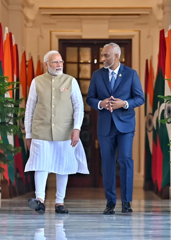 ਪ੍ਰਧਾਨ ਮੰਤਰੀ ਨਰਿੰਦਰ ਮੋਦੀ ਨੇ ਸੋਮਵਾਰ ਨੂੰ ਇੱਥੇ ਮਾਲਦੀਵ ਦੇ ਰਾਸ਼ਟਰਪਤੀ ਮੁਹੰਮਦ ਮੁਈਜ਼ੂ ਨਾਲ ਮੁਲਾਕਾਤ ਕੀਤੀ ਅਤੇ ਦੁਵੱਲੇ ਸਬੰਧਾਂ ਨੂੰ ਮਜ਼ਬੂਤ ਕਰਨ ਲਈ ਵਿਆਪਕ ਚਰਚਾ ਕੀਤੀ। ਮੁਈਜ਼ੂ ਚਾਰ ਰੋਜ਼ਾ ਦੌਰੇ ’ਤੇ ਐਤਵਾਰ ਸ਼ਾਮ ਨੂੰ ਇੱਥੇ ਪਹੁੰਚੇ ਹਨ। ਵਿਦੇਸ਼ ਮੰਤਰਾਲੇ ਦੇ ਬੁਲਾਰੇ ਰਣਧੀਰ ਜੈਸਵਾਲ ਨੇ ‘ਐਕਸ’ ਪੋਸਟ ਵਿਚ ਕਿਹਾ ਕਿ ਭਾਰਤ-ਮਾਲਦੀਵ ਦੇ ਵਿਸ਼ੇਸ਼ ਸਬੰਧਾਂ ਨੂੰ ਅੱਗੇ ਵਧਾਉਂਦੇ ਹੋਏ ਪ੍ਰਧਾਨ ਮੰਤਰੀ ਨਰਿੰਦਰ ਮੋਦੀ ਨੇ ਹੈਦਰਾਬਾਦ ਹਾਊਸ ਪਹੁੰਚਣ ’ਤੇ ਮਾਲਦੀਵ ਦੇ ਰਾਸ਼ਟਰਪਤੀ ਦਾ ਗਰਮਜੋਸ਼ੀ ਨਾਲ ਸਵਾਗਤ ਕੀਤਾ।
