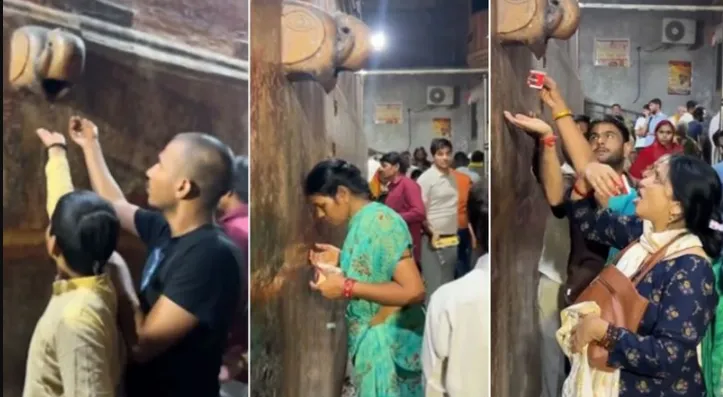 “ਅੰਧ ਵਿਸ਼ਵਾਸ” ਦੀ ਇੱਕ ਸ਼ਾਨਦਾਰ ਉਦਾਹਰਣ ਵਿੱਚ ਮਥੁਰਾ ਦੇ ਬਾਂਕੇ ਬਿਹਾਰੀ ਮੰਦਰ ਤੋਂ ਇੱਕ ਵੀਡੀਓ ਵਾਇਰਲ ਹੋਇਆ ਹੈ ਜਿੱਥੇ ਸ਼ਰਧਾਲੂ ਇੱਕ ਹਾਥੀ ਦੀ ਮੂਰਤੀ ਤੋਂ ਡਿੱਗਦਾ ਪਾਣੀ ਇਕੱਠਾ ਕਰਨ ਲਈ ਲਾਈਨ ਵਿੱਚ ਖੜ੍ਹੇ ਦਿਖਾਈ ਦੇ ਰਹੇ ਹਨ, ਉਹ ਇਸ ਨੂੰ “ਚਰਨ ਅੰਮ੍ਰਿਤ” ਮੰਨ ਰਹੇ ਹਨ।