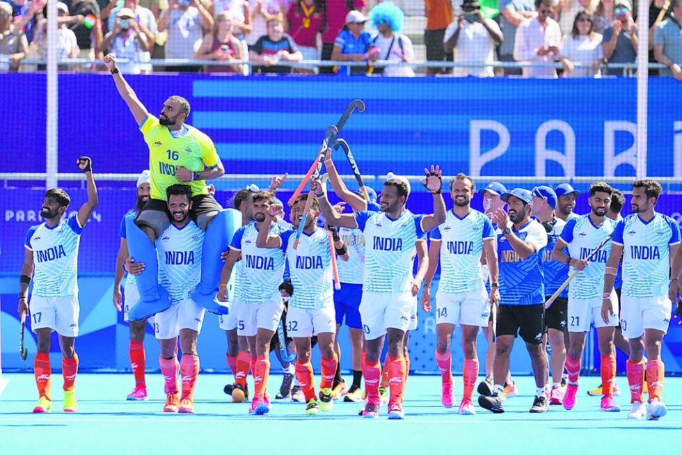 ਭਾਰਤ ਨੇ ਰੋਮਾਂਚਕ ਮੁਕਾਬਲੇ ਵਿੱਚ ਸਪੇਨ ਨੂੰ 2-1 ਨਾਲ ਹਰਾ ਕੇ ਹਾਕੀ ਵਿੱਚ ਕਾਂਸੀ ਦਾ ਤਗ਼ਮਾ ਜਿੱਤਿਆ ਹੈ। ਭਾਰਤ ਨੇ 1972 ਮਗਰੋਂ ਪਹਿਲੀ ਵਾਰ ਲਗਾਤਾਰ ਦੂਸਰਾ ਓਲੰਪਿਕ ਹਾਕੀ ਤਗ਼ਮਾ ਜਿੱਤਿਆ। ਕਪਤਾਨ ਹਰਮਨਪ੍ਰੀਤ ਸਿੰਘ ਕਹਿੰਦੇ ਹਨ, ‘‘ਹਾਕੀ ਵਾਪਸ ਆ ਗਈ ਹੈ।’’ ਇਸ ਮਗਰੋਂ ਟੋਕੀਓ ਓਲੰਪਿਕ ਦੇ ਜਸ਼ਨ ਨੂੰ ਦੁਹਰਾਉਂਦਿਆਂ ਸ੍ਰੀਜੇਸ਼ ਗੋਲ ਪੋਸਟ ’ਤੇ ਚੜ੍ਹ ਗਏ। ਅਸਲ ਵਿੱਚ ਇਹ ਸ੍ਰੀਜੇਸ਼ ਦਾ ਆਖ਼ਰੀ ਮੈਚ ਸੀ। ਜਸ਼ਨ ਦੇ ਇਸ ਮਾਹੌਲ ਵਿੱਚ ਟੀਮ ਦੇ ਕਪਤਾਨ ਹਰਮਨਪ੍ਰੀਤ ਸਿੰਘ ਨੇ ਇਸ ਮਹਾਨ ਗੋਲਚੀ ਨੂੰ ਆਪਣੇ ਮੋਢਿਆਂ ’ਤੇ ਚੁੱਕ ਲਿਆ। ਸਪੇਨ ਨੇ ਇਸ ਮੁਕਾਬਲੇ ਵਿੱਚ ਭਾਰਤੀਆਂ ਨੂੰ ਅਖ਼ੀਰ ਤੱਕ ਸਖ਼ਤ ਚੁਣੌਤੀ ਦਿੱਤੀ। ਆਖ਼ਰੀ 60 ਸਕਿੰਟਾਂ (ਇੰਕ ਮਿੰਟ) ਵਿੱਚ ਚਾਰ ਪੈਨਲਟੀ ਕਾਰਨਰ ਹਾਸਲ ਕੀਤੇ, ਪਰ ਭਾਰਤੀ ਡਿਫੈਂਡਰ ਡਟੇ ਰਹੇ। ਜਿਵੇਂ ਕਿ ਕੋਚ ਕ੍ਰੈਗ ਫੁਲਟਨ ਨੇ ਕਿਹਾ, ‘‘ਟੀਮ ਪੂਰੀ ਤਰ੍ਹਾਂ ਤਿਆਰ ਸੀ। ਦਬਾਅ ਸਾਹਮਣੇ ਉਸ ਦਾ ਹੌਸਲਾ ਨਹੀਂ ਟੁੱਟਿਆ। ਸ਼ੁਰੂ ਤੋਂ ਹੀ ਹਮਲਾਵਰ ਸਪੇਨ ਨੇ ਆਖ਼ਰੀ ਪੰਜ ਮਿੰਟ ਵਿੱਚ ਭਾਰਤੀ ਖੇਤਰ ਵਿੱਚ ਲਗਾਤਾਰ ਹਮਲੇ ਕੀਤੇ। ਸਾਡੇ ਖਿਡਾਰੀ ਥੋੜ੍ਹੇ ਬੇਚੈਨ ਹੋ ਗਏ ਸਨ। ਹਰਮਨਪ੍ਰੀਤ, ਜੋ ਆਮ ਕਰਕੇ ਸ਼ਾਂਤ ਰਹਿੰਦੇ ਹਨ, ਨੇ ਆਖ਼ਰੀ ਮਿੰਟ ਵਿੱਚ ਭਾਰਤ ਦੇ ਡੇਂਜਰ ਏਰੀਏ ਵਿੱਚ ਜੋਰਡੀ ਬੋਨਾਸਟ੍ਰੇ ਨੂੰ ਪਛਾੜਿਆ ਅਤੇ ਇੱਕ ਹੋਰ ਪੈਨਲਟੀ ਕਾਰਨਰ ਦਿੱਤਾ। ਹਾਲਾਂਕਿ, ਭਾਰਤ ਗੇਂਦ ਨੂੰ ਰੋਕਣ ਵਿੱਚ ਸਫਲ ਰਿਹਾ। ਫਿਰ ਤਾਂ ਜਜ਼ਬਾਤ ਦਾ ਸੈਲਾਬ ਵਹਿ ਤੁਰਿਆ ਅਤੇ ਖਿਡਾਰੀ ਛਾਲਾਂ ਮਾਰਨ ਲੱਗੇ। ਕੋਚ ਵਜੋਂ ਅਹੁਦਾ ਸੰਭਾਲਣ ਮਗਰੋਂ ਪਿਛਲੇ 14 ਮਹੀਨਿਆਂ ਤੋਂ ਕ੍ਰੈਗ ਫੁਲਟਨ ਹਮੇਸ਼ਾ ਵਿਸ਼ਵਾਸ ਬਣਾਉਣ ਅਤੇ ਡਿਫੈਂਸ ਨੂੰ ਮਜ਼ਬੂਤ ਕਰਨ ’ਤੇ ਜ਼ੋਰ ਦਿੰਦੇ ਰਹੇ ਹਨ। ਅੱਜ ਫੁਲਟਨ ਟੀਮ ਦੇ ਪ੍ਰਦਰਸ਼ਨ ਤੋਂ ਖੁਸ਼ ਸਨ।