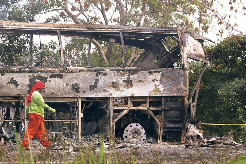 ਮੈਕਸਿਕੋ ਸ਼ਹਿਰ/ਏ.ਟੀ.ਨਿਊਜ਼: ਦੱਖਣੀ ਮੈਕਸਿਕੋ ਵਿਚ ਸ਼ਨਿੱਚਰਵਾਰ ਵੱਡੇ ਤੜਕੇ ਬੱਸ ਤੇ ਟਰੱਕ ਦੀ ਸਿੱਧੀ ਟੱਕਰ ਵਿੱਚ 41 ਵਿਅਕਤੀਆਂ ਦੀ ਮੌਤ ਹੋ ਗਈ। ਮ੍ਰਿਤਕਾਂ ਵਿੱਚ ਦੋਵਾਂ ਵਾਹਨਾਂ ਦੇ ਡਰਾਈਵਰ ਵੀ ਸ਼ਾਮਲ ਹਨ। ਰਾਹਤ ਤੇ ਬਚਾਅ ਕਾਰਜ ਜਾਰੀ ਹਨ। ਬੱਸ ਵਿੱਚ ਕੁੱਲ 48 ਵਿਅਕਤੀ ਸਵਾਰ ਸਨ। ਹਾਦਸੇ ਵਿੱਚ 38 ਮੁਸਾਫ਼ਰਾਂ ਤੇ ਦੋਵਾਂ ਡਰਾਈਵਰਾਂ ਦੀ ਮੌਤ ਹੋ ਗਈ। ਸਥਾਨਕ ਅਥਾਰਿਟੀਜ਼ ਨੇ ਕਿਹਾ ਕਿ ਮ੍ਰਿਤਕਾਂ ਵਿੱਚ ਟਰੱਕ ਦਾ ਡਰਾਈਵਰ ਵੀ ਸ਼ਾਮਲ ਹੈ। ਦੋਵਾਂ ਵਾਹਨਾਂ ਦੀ ਟੱਕਰ ਇੰਨੀ ਜ਼ਬਰਦਸਤ ਸੀ ਕਿ ਬੱਸ ਨੂੰ ਅੱਗ ਲੱਗ ਗਈ। ਖ਼ਬਰ ਏਜੰਸੀ ਰਾਇਟਰਜ਼ ਵੱਲੋਂ ਜਾਰੀ ਤਸਵੀਰਾਂ ਵਿੱਚ ਬੱਸ ਅੱਗ ਦੀਆਂ ਲਪਟਾਂ ਵਿੱਚ ਘਿਰੀ ਨਜ਼ਰ ਆ ਰਹੀ ਹੈ। ਟਬੈਸਕੋ ਸਿਕਿਓਰਿਟੀ ਵਿਚਲੇ ਸੂਤਰਾਂ ਨੇ ਕਿਹਾ ਕਿ ਹੁਣ ਤੱਕ 18 ਬੁਰੀ ਤਰ੍ਹਾਂ ਝੁਲਸੀਆਂ ਹੋਈਆਂ ਲਾਸ਼ਾਂ ਮਿਲੀਆਂ ਹਨ ਤੇ ਹੋਰਾਂ ਦੀ ਭਾਲ ਜਾਰੀ ਹੈ।’’ ਬੱਸ ਅਪਰੇਟਰ ਟੂਰਜ਼ ਐਕੋਸਟਾ ਨੇ ਫੇਸਬੁੱਕ ’ਤੇ ਇਕ ਪੋਸਟ ਵਿੱਚ ਹਾਦਸੇ ’ਚ ਗਈਆਂ ਜਾਨਾਂ ’ਤੇ ਦੁੱਖ ਜਤਾਇਆ ਹੈ। ਉਧਰ ਸਥਾਨਕ ਅਥਾਰਿਟੀਜ਼ ਵੱਲੋਂ ਹਾਦਸੇ ਦੇ ਕਾਰਨਾਂ ਦੀ ਜਾਂਚ ਕੀਤੀ ਜਾ ਰਹੀ ਹੈ। ਉਨ੍ਹਾਂ ਇਹ ਹਾਦਸਾ ਵਾਹਨਾਂ ਦੀ ਰਫ਼ਤਾਰ ਜ਼ਿਆਦਾ ਹੋਣ ਕਾਰਨ ਵਾਪਰਨ ਦਾ ਖਦਸ਼ਾ ਜ਼ਾਹਿਰ ਕੀਤਾ ਹੈ।