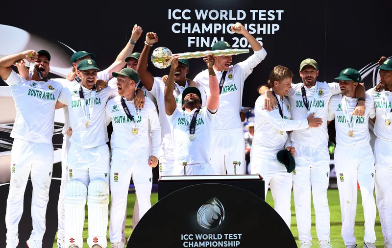 ਦੱਖਣੀ ਅਫਰੀਕਾ ਨੇ ਪਿਛਲੇ ਦਿਨੀਂ ਇੱਥੇ ਵਿਸ਼ਵ ਟੈਸਟ ਚੈਂਪੀਅਨਸ਼ਿਪ ਫਾਈਨਲ ਦੇ ਚੌਥੇ ਦਿਨ ਆਸਟ੍ਰੇਲੀਆ ਨੂੰ ਪੰਜ ਵਿਕਟਾਂ ਨਾਲ ਹਰਾ ਕੇ ਖਿਤਾਬ ਜਿੱਤ ਲਿਆ ਹੈ। ਦੱਖਣੀ ਅਫਰੀਕਾ ਨੇ ਜਿੱਤ ਲਈ ਲੋੜੀਂਦੀਆਂ 69 ਦੌੜਾਂ ਬਣਾ ਕੇ ਇਹ ਖਿਤਾਬ ਆਪਣੇ ਨਾਮ ਕੀਤਾ। ਇਹ ਦੱਖਣੀ ਅਫਰੀਕਾ ਦਾ 27 ਸਾਲਾਂ ’ਚ ਪਹਿਲਾ ਵੱਡਾ ਕ੍ਰਿਕਟ ਖਿਤਾਬ ਹੈ। ਦੱਖਣੀ ਅਫਰੀਕਾ ਨੇ ਆਪਣਾ ਪਿਛਲਾ ਆਈ.ਸੀ.ਸੀ. ਖਿਤਾਬ 1998 ਵਿੱਚ ਚੈਂਪੀਅਨਜ਼ ਟਰਾਫੀ ਦੇ ਰੂਪ ਵਿੱਚ ਜਿੱਤਿਆ ਸੀ। ਜਿੱਤ ਮਗਰੋਂ ਟੀਮ ਦੇ ਖਿਡਾਰੀਆਂ ਅਤੇ ਪ੍ਰਸ਼ੰਸਕਾਂ ਨੇ ਲਾਰਡਜ਼ ਦੇ ਮੈਦਾਨ ’ਤੇ ਖੂਬ ਜਸ਼ਨ ਮਨਾਇਆ।