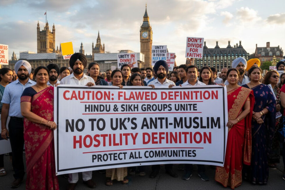 ਲੰਡਨ/ਏ.ਟੀ.ਨਿਊਜ਼: ਬ੍ਰਿਟੇਨ ਵਿੱਚ ਹਿੰਦੂ ਅਤੇ ਸਿੱਖ ਸੰਗਠਨਾਂ ਨੇ ਚਿਤਾਵਨੀ ਦਿੱਤੀ ਹੈ ਕਿ ਬ੍ਰਿਟਿਸ਼ ਸਰਕਾਰ ਦੁਆਰਾ ਵਿਚਾਰ ਅਧੀਨ ‘ਮੁਸਲਿਮ ਵਿਰੋਧੀ ਦੁਸ਼ਮਣੀ’ ਦੀ ਪ੍ਰਸਤਾਵਿਤ ਖਰੜਾ ਪਰਿਭਾਸ਼ਾ ਦੇ ਸੰਬੰਧ ਵਿੱਚ ਸਾਵਧਾਨੀ ਵਰਤਣੀ ਚਾਹੀਦੀ ਹੈ, ਕਿਉਂਕਿ ਇਹ ਹਾਲ ਹੀ ਵਿੱਚ ਮੀਡੀਆ ਦੇ ਕੁਝ ਹਿੱਸਿਆਂ ਵਿੱਚ ਲੀਕ ਹੋ ਗਈ ਸੀ।